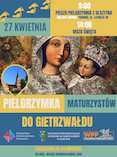 Zapraszamy serdecznie na Pielgrzymkę Maturzystów do Gietrzwałdu 😀, która odbędzie się 2⃣7⃣ kwietnia 🤗. Startujemy o 9:00 z parkingu 🅿 przy ul. Lotniczej 38. W programie katecheza, słodki poczęstunek, także niesamowite przeżycia 😉