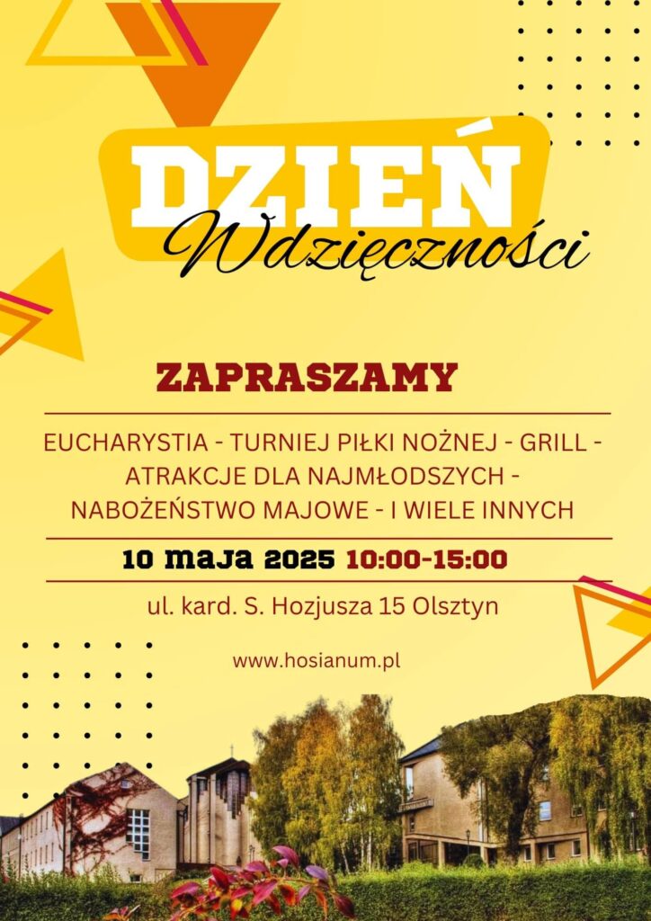 Wyższe Seminarium Duchowne Metropolii Warmińskiej „Hosianum” w Olsztynie serdecznie zaprasza wszystkich Kapłanów, Katechetów, Liturgiczną Służbę Ołtarza, młodzież oraz przyjaciół seminarium na Dzień Wdzięczności, który odbędzie się w sobotę 10 maja 2025 roku.