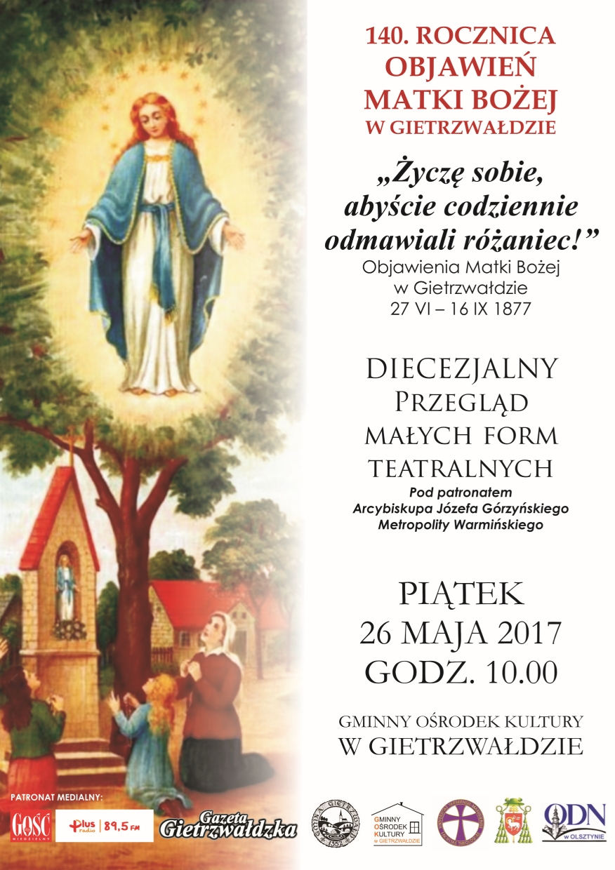 II Przegląd szkolnych form teatralnych i występów wokalnych poświęcony będzie tematyce Maryjnej ze szczególnym uwzględnieniem objawień w Gietrzwałdzie. Termin 26 maja (dzień matki) amfiteatr w Gietrzwałdzie.